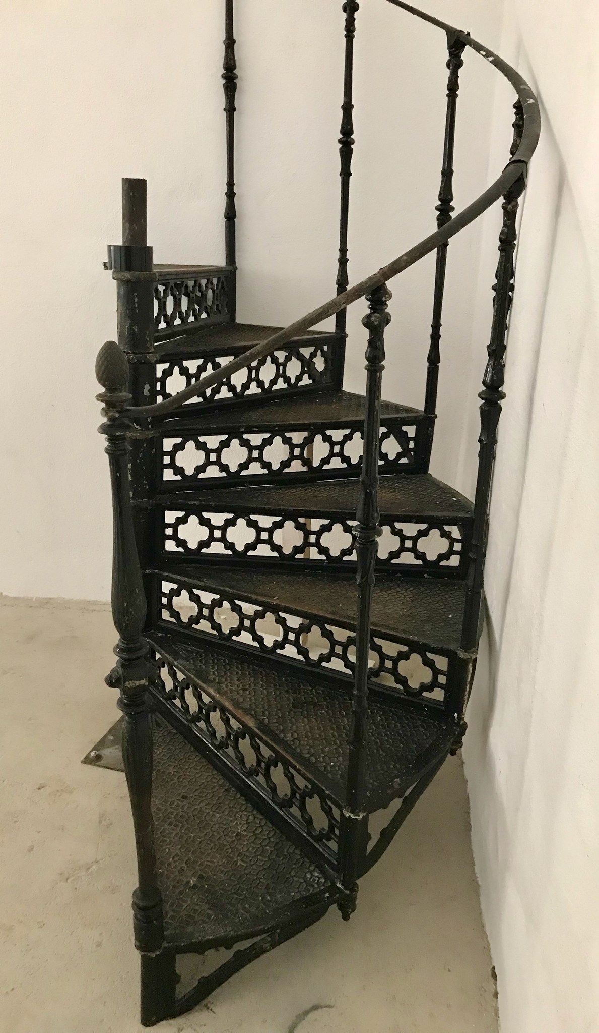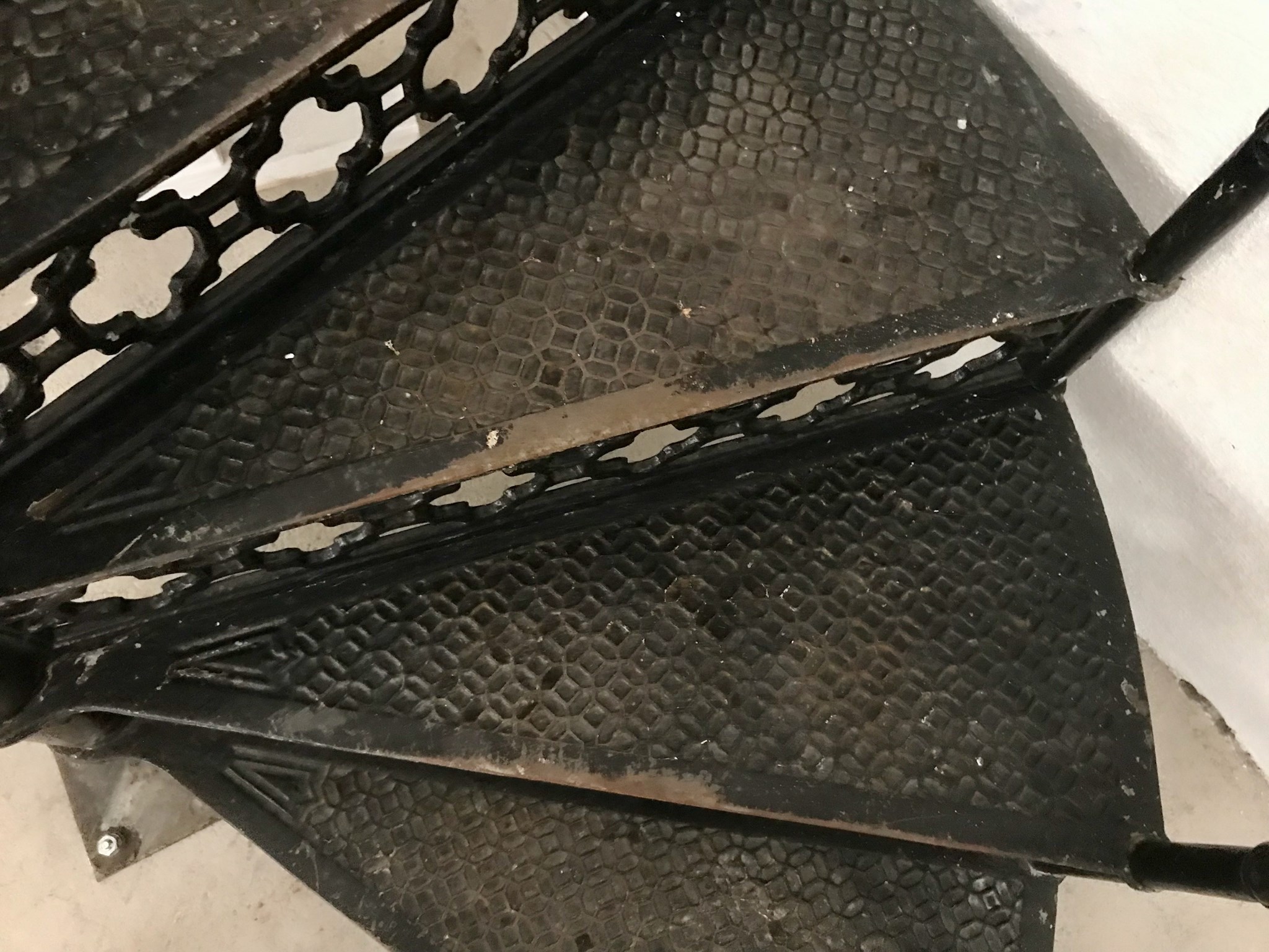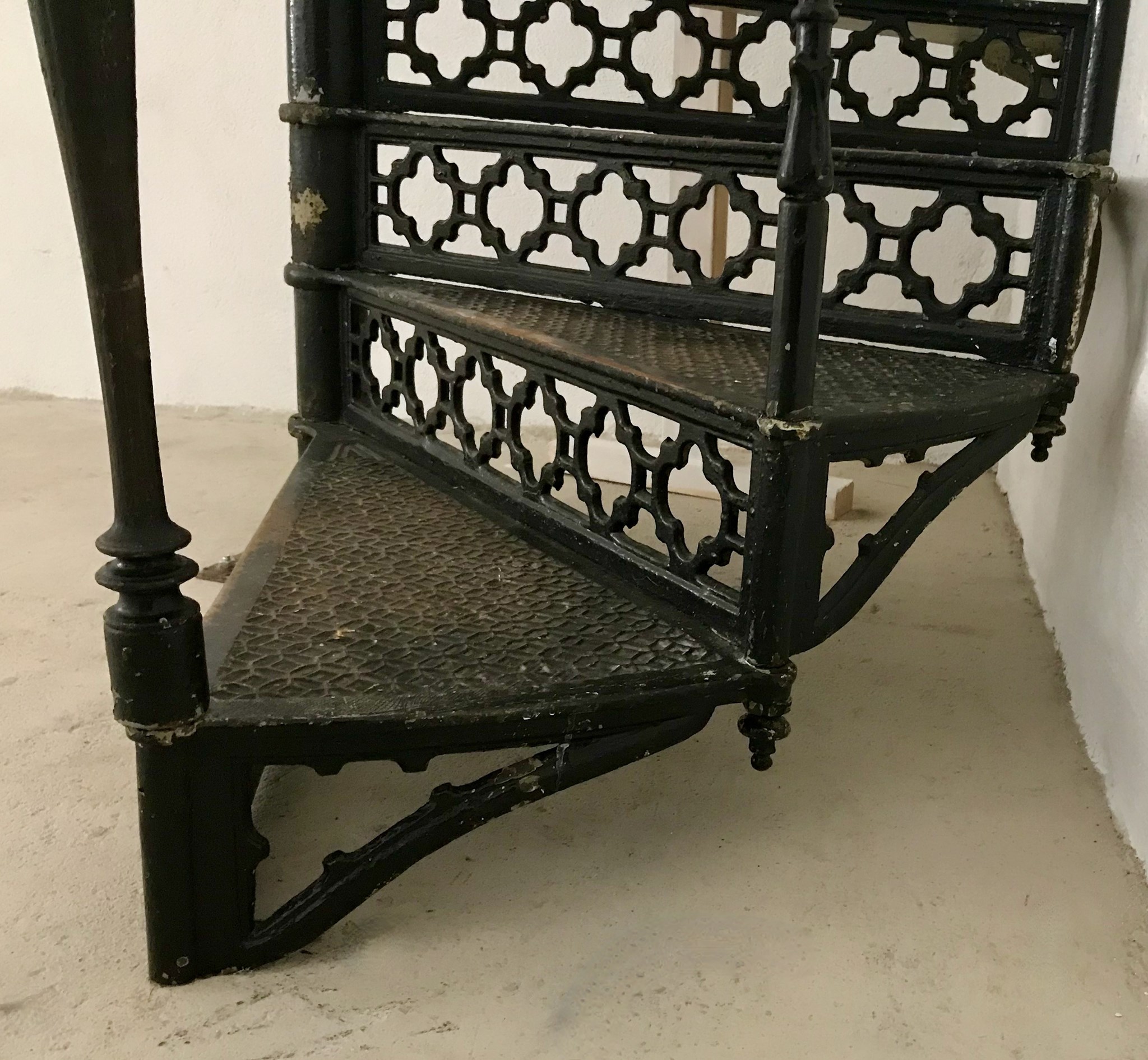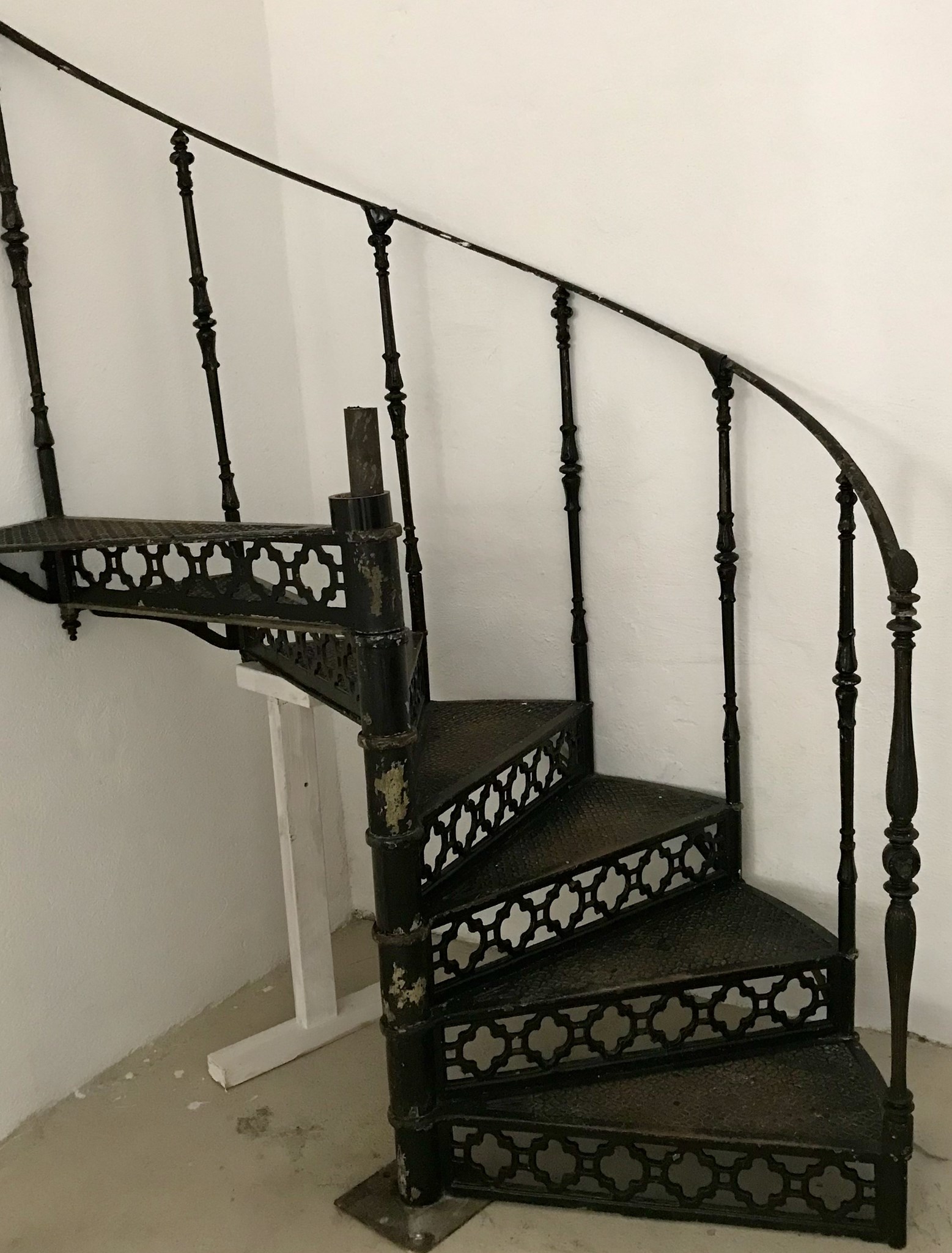 "Die Rosi woa a duat. I sog Ihnans, aufdacklt woa de wieda, wos soll i Ihna sogn." "Gehn's, jetzt heans ma oba auf. Allanich, woas duat? Ganz alla?" "Ah geh, doch net alla, wo denk'n S denn hin. Mit ihrn neichn Gschamsterer is kumma – der soi jo so aufknedlt sei ois wia." "Ah gehn's, aso? Wirkli? "Na wos, den sein Vater woa doch ein ganz ein hoches Viech in da Seifensiederei in da Schwindgossn drübn. De waß scho, wos duat, die Rosi, de Kanaille." "No, der wird oba a Freid hom, da Herr Papa, wann der feine Herr Sohn mit so an Flitscherl daher kummt, mit so an ordinär'n." Tja, waren unsre zwei belauschten Damen nur von Eifersucht auf den spendablen Gschamsterer (Verehrer) geplagt oder waren die Absichten des Fräulein Rosis tatsächlich nicht die redlichsten? Nix genaues weiß man nicht ... Außer, daß man so einen "Gschamsterer" wohl auch selbst nicht von der Bettka... Geschoßkante schubsen tät ... Erzeugnis der Fa. Waagner (ab 1904 Waagner - Biró) ca. 1880/90, Gußeisen Links gedreht Inkl. Handlauf, Geländerstäbe, Antrittssäule und Austrittspodest.