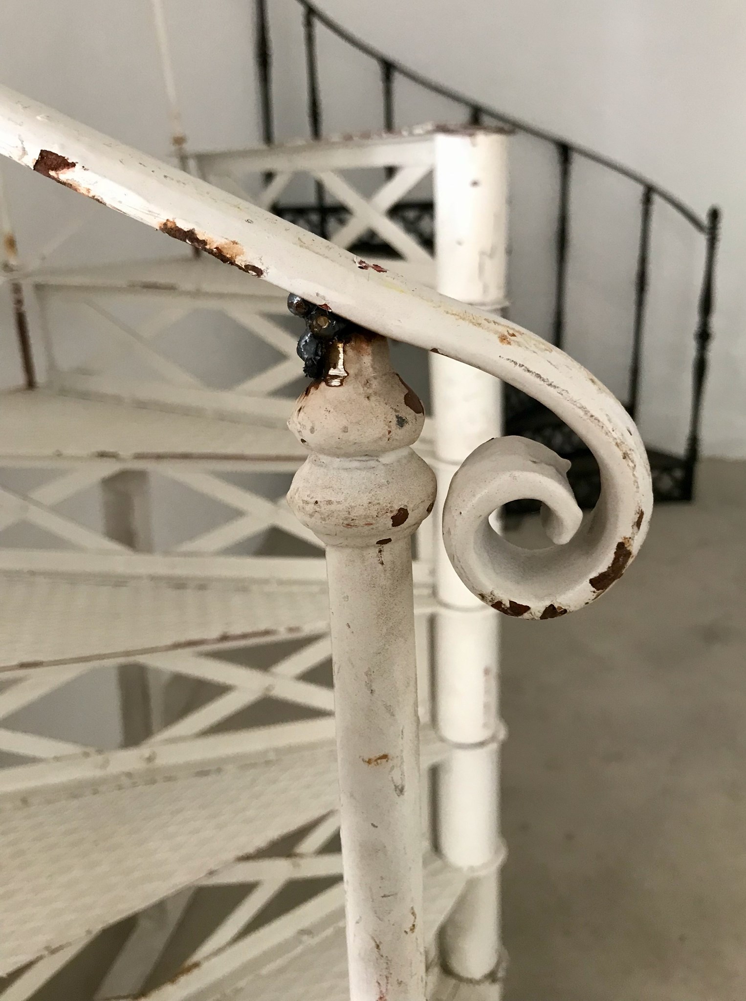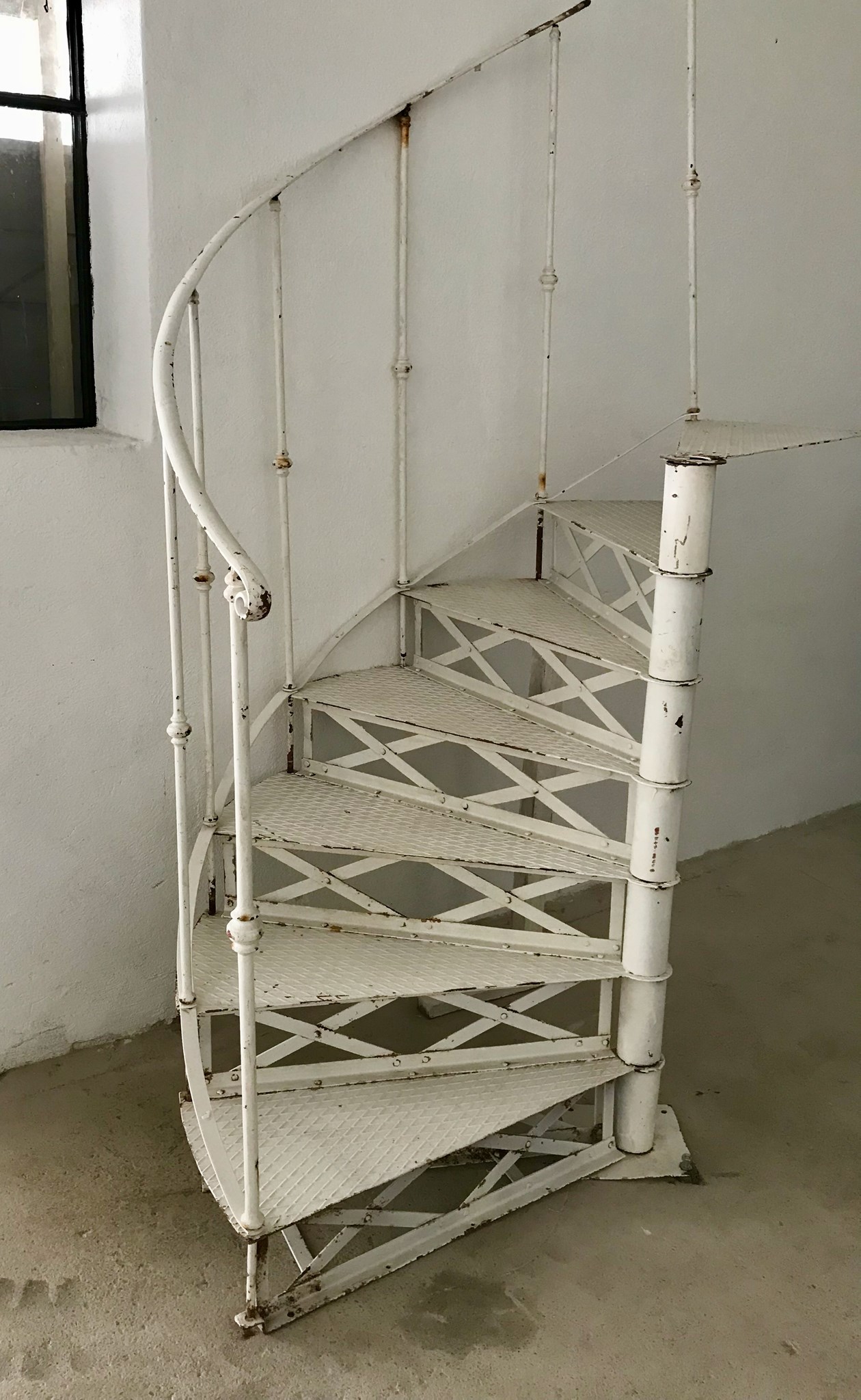 Wie oft wohl, mag so ein spitzbübischer Lehrbua (Auszubildender) das strengste Rutschverbot mißachtet haben? Und wieviele Lehrbuam sah der "Rudschduam" wohl ergrau'n, in jener Zeit, als die Lehrstelle zumeist auch die Lebensstelle war ... Industrielle Wendeltreppe, wie sie in so manch Altwiener Werkstatt zu finden war. Die Treppe ist inkl. der Geländerstäbe, Handlauf, Kranz und Austrittsfläche. Durch Anklicken eines Photos wird dieses vergrößert dargestellt und weitere Photos angezeigt.